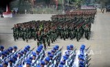 Devile pasukan saat Gladi Bersih Upacara HUT TNI ke-72 di Dermaga Indah Kiat Cilegon, Banten, Selasa (3/10). (FOTO : Republika/Wihdan Hidayat)