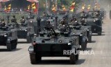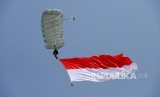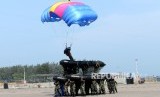 Pasukan melakukan atraksi saat Gladi Bersih Upacara HUT TNI ke-72 di Dermaga Indah Kiat Cilegon, Banten, Selasa (3/10). (FOTO : Republika/Wihdan Hidayat)
