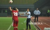 Pelatih timnas Indonesia Luis Milla memberikan instruksi kepada pemain dalam laga uji coba melawan Kamboja di Stadion Patriot Chandrabhaga, Bekasi, Rabu (4/10). (FOTO : Republika/Edwin Dwi Putranto)