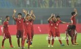 Pemain timnas Indonesia memberikan salam kepada suporter seusai laga uji coba melawan Kamboja di Stadion Patriot Chandrabhaga, Bekasi, Rabu (4/10). (FOTO : Republika/Edwin Dwi Putranto)