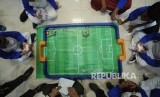 Peserta Robot Challange. Peserta Robot Soccer sedang berlomba dalam lomba Wonderful Indonesia Challenge di Aula Kemenpora Kamis (05/10). (FOTO : Republika/Iman Firmansyah)