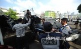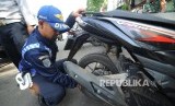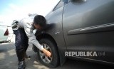 REPUBLIKA.CO.ID, JAKARTA -- Petugas Sudin Perhubungan Jakarta Pusat melakukan cabut pentil dalam operasi angkut jaring parkir liar di Tanah Abang, Jakarta Pusat, Kamis (5/10).