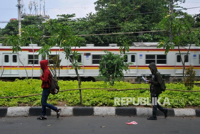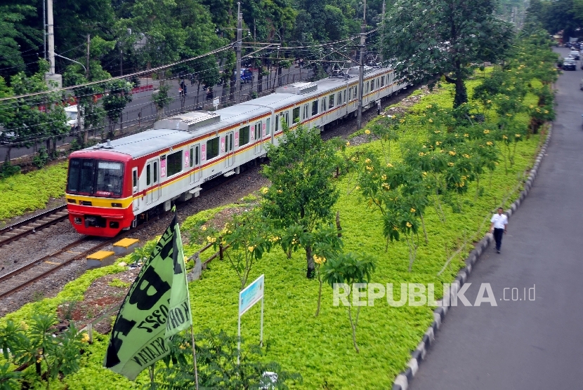 REPUBLIKA.CO.ID, JAKARTA -- Kereta Rel Listrik (KRL) melintas di samping Ruang Terbuka Hijau (RTH) Rawajati, Pancoran, Jakarta Selatan, Jumat (6/10).