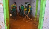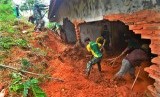 REPUBLIKA.CO.ID, PANGANDARAN -- Warga bersama prajurit TNI AD dari Yonif 323/Buaya Putih Raider membersihkan lumpur atau material tanah pascalongsor yang menimpa dua rumah dan menyebabkan empat orang tewas tertimbun di Sidamulih, Kabupaten Pangandaran, Jawa Barat, Ahad (8/10).