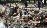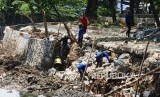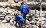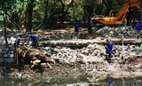 REPUBLIKA.CO.ID, JAKARTA -- Sejumlah petugas dari Sudin Sumber Daya Air Jakarta Utara sedang menyusun batu koral sebagai bantalan kali Sentiong di perbatasan antara wilayah Sunter Podomoro dengan Pademangan Jakarta, Senin (9/10).