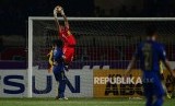 Penjaga gawang Barito Putra Adhitya Harlan menyelamatkan bola pada pertandingan Gojek Traveloka Liga 1 di Stadion Si Jalak Harupat, Soreang, Kabupaten Bandung, Jawa Barat, Senin (9/10). (FOTO : Yogi Ardhi/Republika)