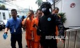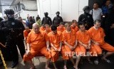 Pengungkapan Sindikat Narkotika Internasional. Beberapa tersangka dihadirkan saat pengungkapan kasus narkotika jaringan internasional, di Badan Narkotika Nasional, Jakarta, Selasa (10/10). (FOTO : Republika/ Wihdan Hidayat)