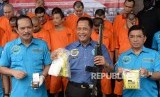 Pengungkapan Sindikat Narkotika Internasional. Kepala BNN Budi Waseso (tengah) menunjukan barang bukti narkotika saat pengungkapan kasus narkotika jaringan internasional, di Badan Narkotika Nasional, Jakarta, Selasa (10/10). (FOTO : Republika/ Wihdan Hidayat)