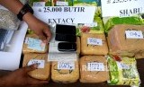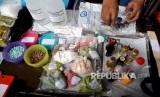 Pengungkapan Sindikat Narkotika Internasional. Petugas menata barag bukti saat pengungkapan kasus narkotika jaringan internasional, di Badan Narkotika Nasional, Jakarta, Selasa (10/10). (FOTO : Republika/ Wihdan Hidayat)