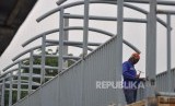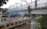 REPUBLIKA.CO.ID, JAKARTA -- Pekerja menyelesaikan proyek pembangunan jembatan penyeberangan orang (JPO) di kawasan Stasiun Tanjung Barat, Jakarta, Selasa (10/10).