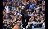 Ekspresi manager Manchester City Pep Guardiola pada pertandingan Liga Primer Ingggris antara Manchester City melawan Stoke City di Etihad Stadium, Manchester, Inggris. (FOTO : Mike Egerton/AP)