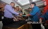 REPUBLIKA.CO.ID, JAKARTA -- Ketua Umum Partai Islam, Damai, Aman (Idaman) Rhoma Irama menyerahkan berkas kepada Anggota KPU Hasyim Asy'ari saat melakukan Pendaftaran Pemilu 2019 di Kantor KPU Pusat, Jakarta, Senin (16/10).