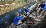 REPUBLIKA.CO.ID, JJAKARTA -- Petugas Dinas Sumber Daya Air membangun turap saluran air di Jalan Jeruk Joglo Barat, Kembangan, Jakarta Barat, Selasa (17/10).