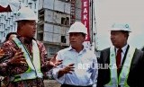 Menristekdikti M Nasir (kanan) berbincang dengan Dirut PT PP (Persero) Tbk Tumiyana (kiri) dan Ketua Umum Ikatan Alumni Universitas Diponegoro (IKA Undip) Maryono (tengah), disela acara "groundbreaking" pembangunan apartemen mahasiswa, di Semarang, Jawa Tengah, Selasa (17/10). Apartemen dengan jumlah kamar sebanyak 678 senilai Rp216 miliar tersebut telah dibeli seluruhnya oleh IKA Undip. (FOTO : Rekotomo/Antara)