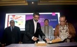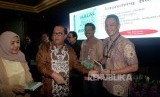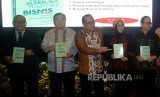 Ketua Halal Lifestyle Center Sapta Nirwandar memberikan buku kepada Dirut Republika Agoosh Yoosran dan para tamu undangan disela pembukan The 2nd Indonesia Internasional Halal Lifestyle Expo & Conference (INHALEC) di Balai Kartini, Jakarta, Kamis (19/10). (FOTO : Republika/Prayogi)