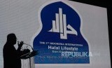 Ketua Halal Lifestyle Center Sapta Nirwandar memberikan sambutan dalam pembukan The 2nd Indonesia Internasional Halal Lifestyle Expo & Conference (INHALEC) di Balai Kartini, Jakarta, Kamis (19/10). (FOTO : Republika/Prayogi)