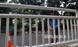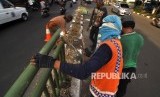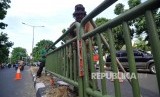 REPUBLIKA.CO.ID, JAKARTA -- Sejumlah pekerja memasang pagar pembatas jalan di kawasan Pancoran, Jakarta Selatan, Jumat (20/10). Pagar pembatas dipasang tersebut untuk menghalangi para pejalan kaki yang menyebrang sembarangan di area tersebut.