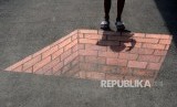 REPUBLIKA.CO.ID, DEPOK -- Jalanan di Kota Depok tepatnya di Jalan Danau Tondano Raya, Depok Timur, Jawa Barat, dihiasi dengan lukisan 3 Dimensi (3D), Sabtu (21/10). lukisan tersebut hasil kreativitas pemuda karang taruna Abadi Jaya, Sukmajaya, Depok, yang dimaksudkan untuk menggantikan peran polisi tidur yang kerap membuat pengendara menjadi kurang nyaman. Jalanan utama tersebut saat ini sudah dibubuhi tujuh lukisan 3D mulai dari gambar balok, tangga hingga karpet terbang. Untuk konsep gambar, lukisan ini terinsipirasi dari museum trick eye di Jogja, serta beberapa tempat yang ada 3D street art.