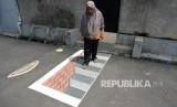 Warga melihat hasil karya lukisan 3 Dimensi di Jalan Danau Tondano Raya, Depok Timur, Jawa Barat, Sabtu (21/10). (FOTO : Republika/Wihdan Hidayat)