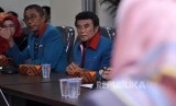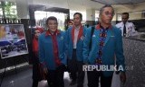 Ketua Umum Partai Idaman, Rhoma Irama didampingi Sekjen Partai Idaman, Ramdansyah, serta jajaran pegurus DPP Partai Idaman melapor ke Kantor Bawaslu, Thamrin, Jakarta, Senin (23/10). (FOTO : Republika/Mahmud Muhyidin)