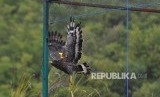 Elang Jawa berada di kandang Pusat Konservasi Elang Kamojang, Kabupaten Garut, Jawa Barat. (FOTO : Republika/Edwin Dwi Putranto)