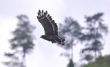 Elang Ular Bido (Spilornis Cheela) yang dilepasliarkan terbang di kawasan Hutan Kamojang, Kabupaten Garut, Jawa Barat. (FOTO : Republika/Edwin Dwi Putranto)