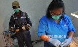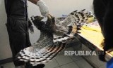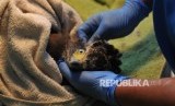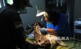 Petugas dari Pusat Konservasi Elang Kamojang (PKEK) melakukan pemeriksaan kesehatan Elang Ular Bido (Spilornis Cheela) di Klinik Kesehatan Konservasi Elang Kamojang, Kabupaten Garut, Jawa Barat. (FOTO : Republika/Edwin Dwi Putranto)