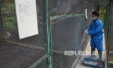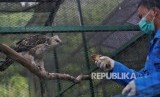 Petugas dari Pusat Konservasi Elang Kamojang (PKEK) memberi makan elang di kandang Konservasi Elang Kamojang, Kabupaten Garut, Jawa Barat. (FOTO : Republika/Edwin Dwi Putranto)