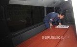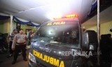 Pulang. Suti/Tuti orang tua korban jenazah Surnah (14) korban kebakaran pabrik mercon di antar oleh Mobil Jenazah RS Polri Keramat Jati usai penyerahan jenazah di Rumah Sakit Polri, Kramat Jati, Jakarta Timur, Kamis, (26/10). (FOTO : Republika/Iman Firmansyah)