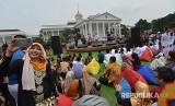 Peserta menyaksikan penampilan penyanyi Rizky Febian saat peringatan Hari Sumpah Pemuda ke-89 di Halaman Istana Bogor, Jawa Barat, Sabtu (28/10). (FOTO : Wahyu Putro/Antara)