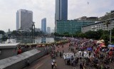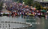 REPUBLIKA.CO.ID, JAKARTA -- Warga berolahraga pada hari bebas kendaraan bermotor di Kawasan Bundaran HI, Jakarta Pusat, Ahad (29/10).