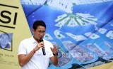 Wakil Gubernur DKI Jakarta Sandiaga Uno memberikan pengantar saat diskusi di DPD Golkar DKI Jakarta, Ahad (29/10). (FOTO : Republika/ Wihdan)