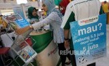 Karyawan Bank Panin Dubai Syariah melayani nasabah pada pameran Keuangan Syariah Fair (KSF) 2017, Cibinong City Mall, Bogor, Jawa Barat, Ahad (29/10). (FOTO : Republika/Prayogi)