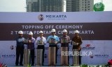 Menko Maritim Luhut Panjaitan (ketiga dari kiri) dan CEO Lippo Grgup James T Riady meresmikan topping off dua tower di Meikarta CBD, Cikarang, Bekasi, Sabtu (29/10). (FOTO : Republika/Yogi Ardhi)