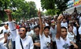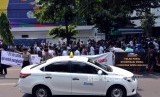 "Ini hak mencari nafkah. Kita di sini adalah orang yang dibantu presiden dengan nawacita. Tapi oleh kemenhub dihancurkan," ujar salah satu orator.