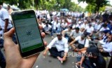 REPUBLIKA.CO.ID, JAKARTA -- Aliansi Driver Online se-Nusantara (Aliano) mengadakan demo di depan Kantor Kementerian Perhubungan, Jakarta Pusat, Selasa (31/10). Demo tersebut menuntut dicabutnya Peraturan Menteri Perhubungan (Permenhub) No 108 yang mengatur angkutan online.