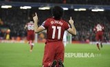 Selebrasi pemain Liverpool Mohamed Salah pada pertandingan Group E Liga Champions Eropa di Stadion Anfield, Liverpool, Kamis (2/11) dini hari. (FOTO : Rui Vieira/AP)