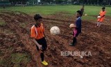 Kondisi Lapangan Blok S. Pelajar saat latihan sepak bola di Lapangan Blok S, Kebayoran Baru, Jakarta Selatan, Kamis (2/11). (FOTO : Republika/Putra M. Akbar)