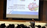 Rekor MURI Menonton Film Anak Yatim. Sejumlah anak yatim mengikuti acara penyerahan santunan oleh LAZIS PLN di Kantor Pusat PLN, Jakarta, Jumat (3/11). (FOTO : Republika/ Wihdan)