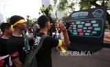 Seorang pelajar bermain games saat acara Siberkreasi Netizen Fair 2017 di kawasan CFD, Jalan Sudirman, Jakarta, Ahad (5/11). (FOTO : Republika/Mahmud Muhyidin)