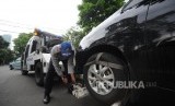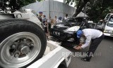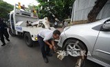 REPUBLIKA.CO.ID, JAKARTA -- Petugas Dinas Perhubungan DKI Jakarta menderek mobil yang parkir di bahu jalan H.Agus Salim, Jakarta Pusat, Selasa (7/11.)