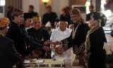REPUBLIKA.CO.ID, SOLO -- Presiden Joko Widodo menikahkan putrinya, Kahiyang Ayu dengan Bobby Nasution disaksikan Wakil Presiden Jusuf Kalla dan Ketua MUI KH Ma'ruf Amin saat ijab kabul di Gedung Graha Saba, Sumber, Solo, Jawa Tengah, Rabu (8/11).