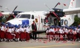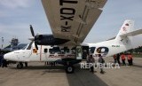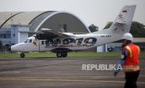 Pesawat N219 terparkir di Bandara Halim Perdana Kusuma saat acara Pemberian Nama Pesawat N219 oleh Presiden RI, Jakarta, Jumat (10/11). (FOTO : Republika/Mahmud Muhyidin)