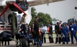 Presiden Joko Widodo meninjau pesawat seusai Pemberian Nama Pesawat N219 di Bandara Halim Perdana Kusuma, Jakarta, Jumat (10/11). (FOTO : Republika/Mahmud Muhyidin)