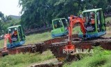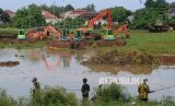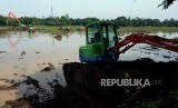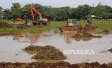 REPUBLIKA.CO.ID, JAKARTA -- Sejumlah alat berat melakukan pengerukan lumpur dan tanaman liar yang tumbuh di kawasan Setu Babakan, Jagakarsa, Jakarta Selatan, Jumat (10/11).