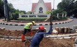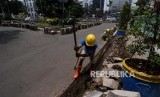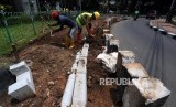 REPUBLIKA.CO.ID, JAKARTA -- Pekerja menyelesaikan pembangunan penataan trotoar di kawasan Menteng, Jakarta Pusat, Jumat (10/11).