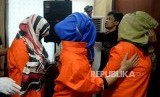 REPUBLIKA.CO.ID, JAKARTA -- Petugas Imigrasi kelas I Jakarta Pusat membawa tahanan saat rilis pengawasan dan penindakan keimigrasian di Kantor Imigrasi Kelas 1 Jakarta Pusat, Jumat (10/11).
