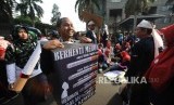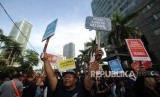 Kampanye Kesehatan. Peserta puncak Hari Kesehatan Nasional ke 53 Membawa poster ajakan hidup sehat di hari Bebas Kendaraan Bermotor di Bundaran HI, Jakarta, Ahad (12/11). (FOTO : Republika/Iman Firmansyah)