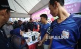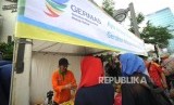 Pemeriksaan Kesehatan. Petugas Kesehatan melakukan pemeriksaan Tekanan darah kepada warga dalam Hari Kesehatan Nasional ke 53 di Hari Bebas Kendaraan Bermotor di Bundaran HI, Jakarta, Ahad (12/11). (FOTO : Republika/Iman Firmansyah)