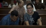 Terdakwa kasus pemberian keterangan yang tidak benar saat bersaksi dalam sidang perkara korupsi pengadaan KTP-el, Miryam S Haryani (kanan), menunggu menjalani sidang putusan di Pengadilan Tipikor, Jakarta, Senin (13/11). (FOTO : Antara/Rosa Panggabean)